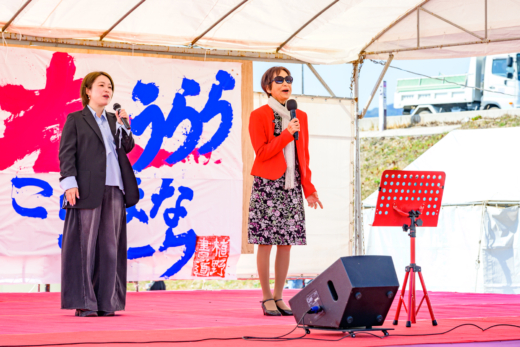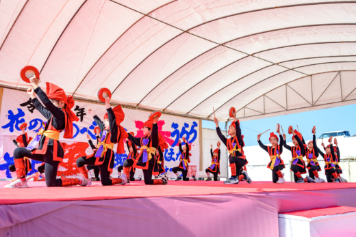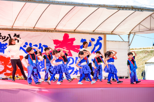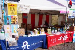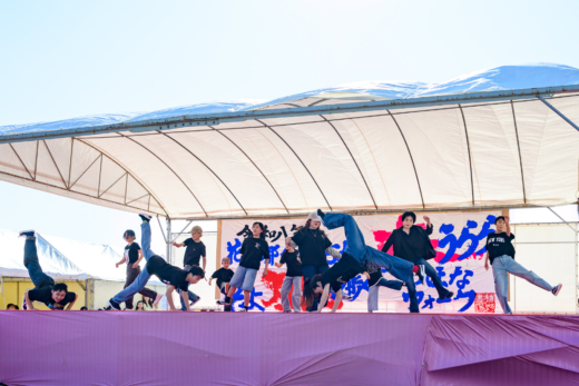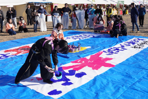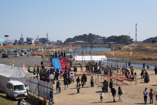 会場の左岸(下流に向かって左側)のエリアはステージイベントと延岡自慢のグルメがずらりと並ぶ「のべおかうまいもの市」、右岸エリアでは、イオン延岡店、多々良店、ホームワイド出北店のご協力による巨大花文字アートや、延岡市内の中学生が手作りしたかざぐるま1,000本の展示、延岡茶道連盟による野点、人力車体験、ワークショップ、自衛隊と国交省による体験コーナー、キッズイベント等など、様々な企画が行われました。