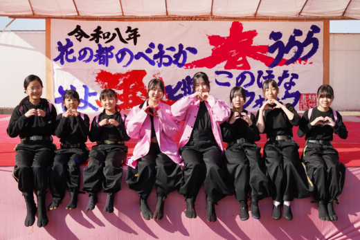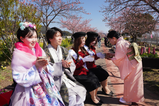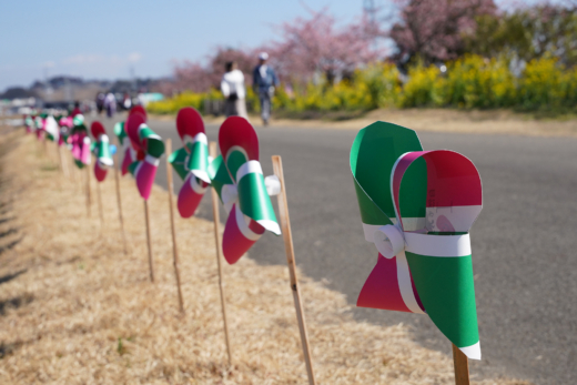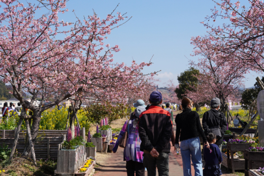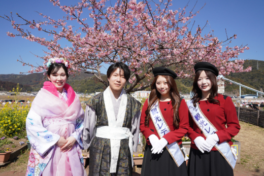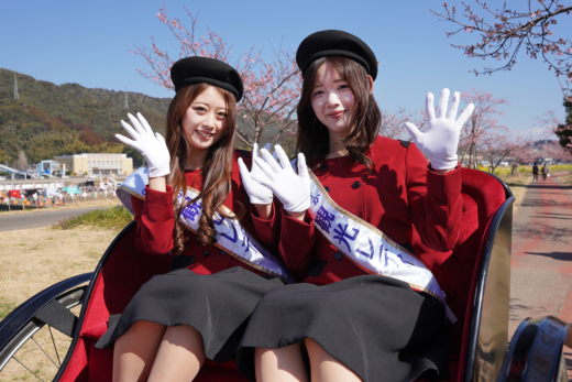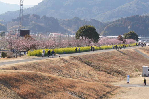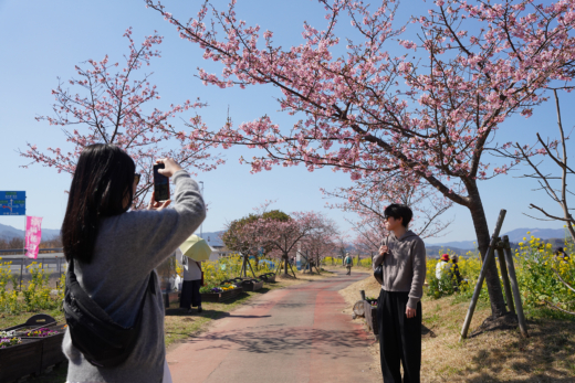 今年は1月後半から2月上旬までに覆われた大寒波の影響が心配されていましたが、開催前1週間は比較的温暖な日に恵まれ、開催当日には桜も9割ほどまで開花が進み、菜の花と鮮やかなピンク色の天下一ひむか桜(河津桜)のコラボレーションが訪れた人の目を楽しませていました。