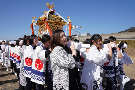 延岡学園女子バレーボール部、延岡青雲高校の女性生徒の方々を中心に神輿を担ぎ上げ、会場を練り歩きました。