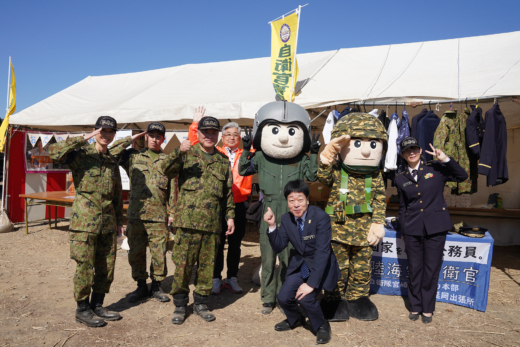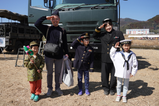 五ヶ瀬川に架けられた「このはな出逢い橋」は、自衛隊訓練として架けられた07式機動支援橋という装備品です。橋脚が不要な単径間橋を採用しており、河川の水量や流速及び河床土質の影響を受けることなく架設が可能です。自衛隊コーナーでは、その車両の展示のほか、熊本及びえびのから19(ひときゅう)式装輪自走155mmりゅう弾砲、浄水セット及び07式機動支援橋架設車の3両を展示。また、宮崎地方協力本部による自衛官募集相談コーナー、ミニ制服の試着コーナーもあります。