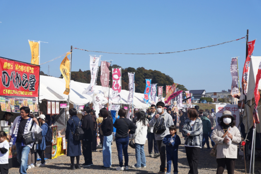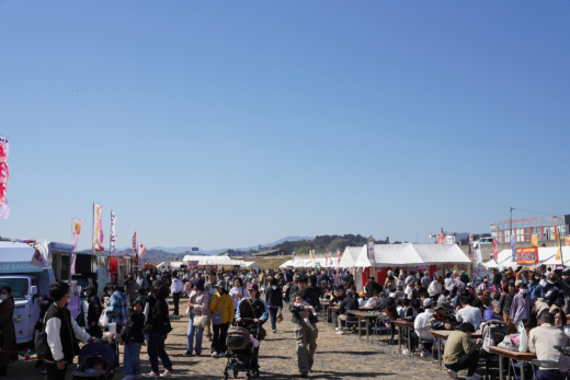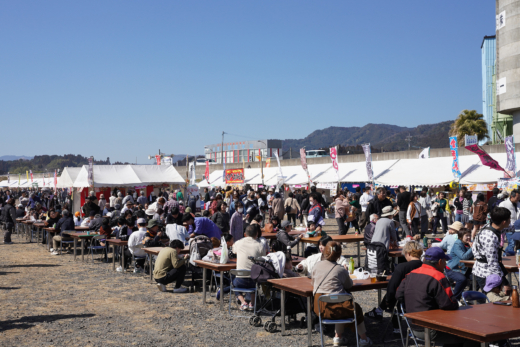 延岡市内外から郷土料理をはじめ様々なグルメや物産品が集結。キッチンかーも9台並び、多くの人が舌鼓をうつ賑やかなグルメブースとなりました。