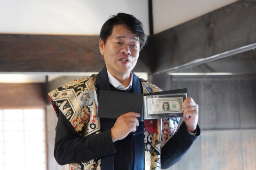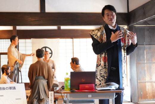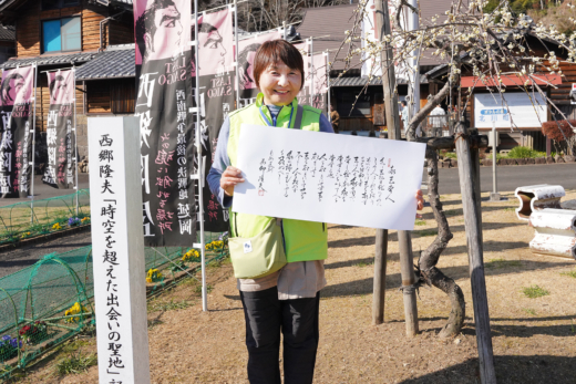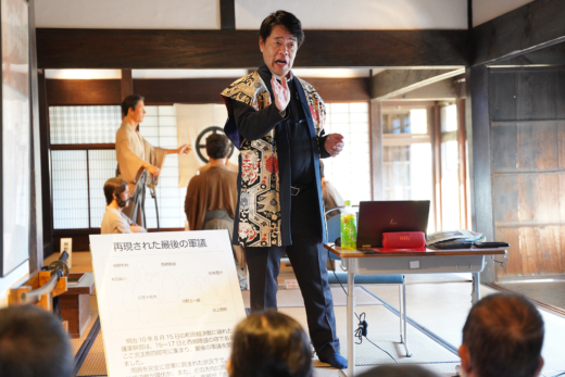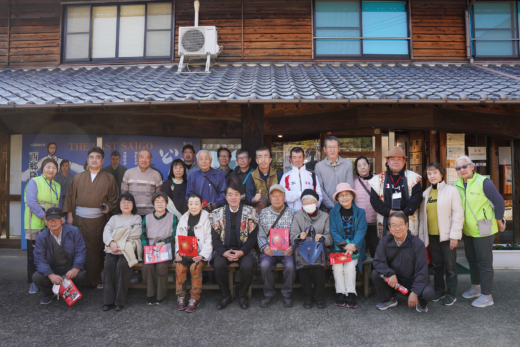 西郷どんとニニギノミコトが出会ったゆかりの地を巡るバスツアー。北川町ある「西郷隆盛宿神跡資料館」では、西郷どんのひ孫である西郷隆夫さんがお出迎え!臨場感あふれる幕末の物語に参加者も真剣に聞き入っていました。