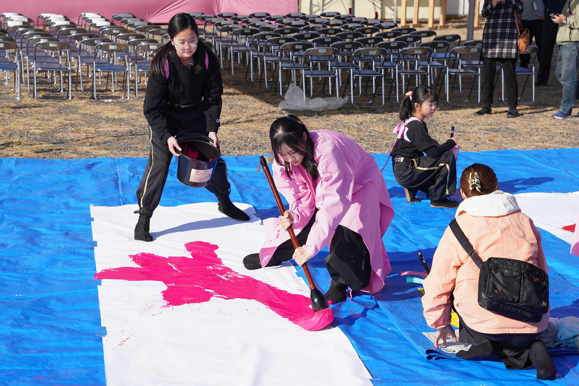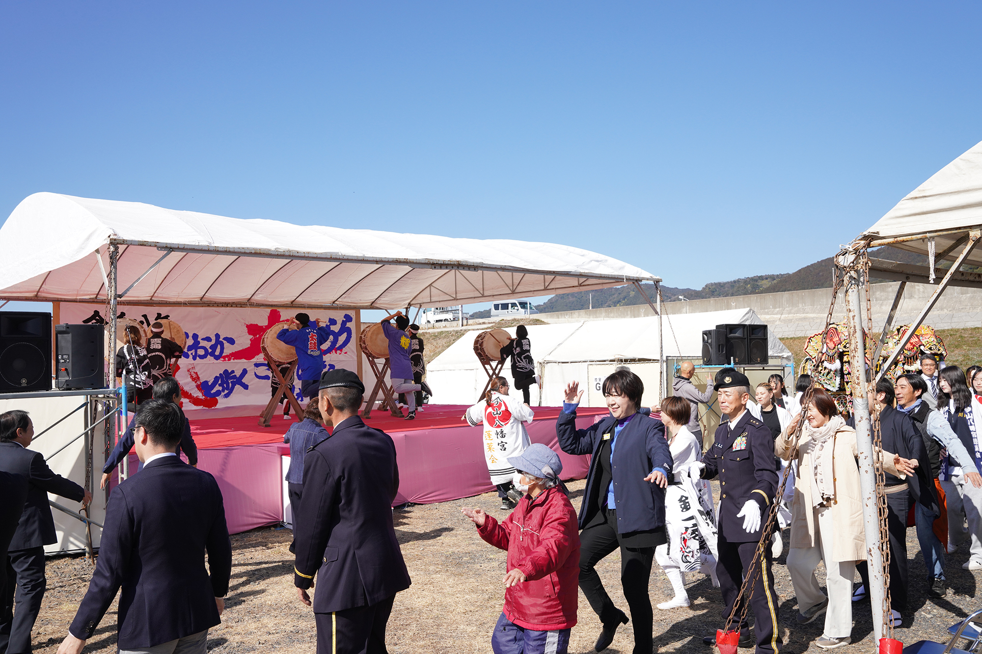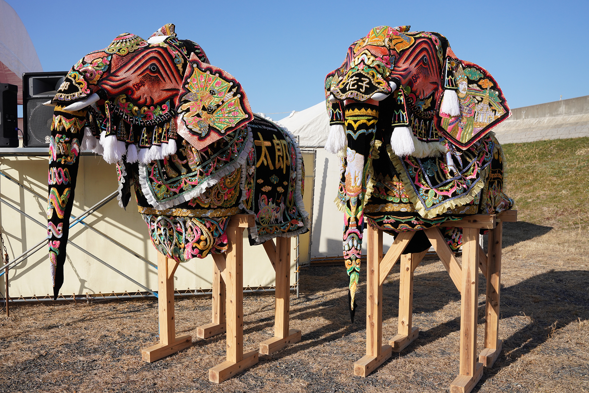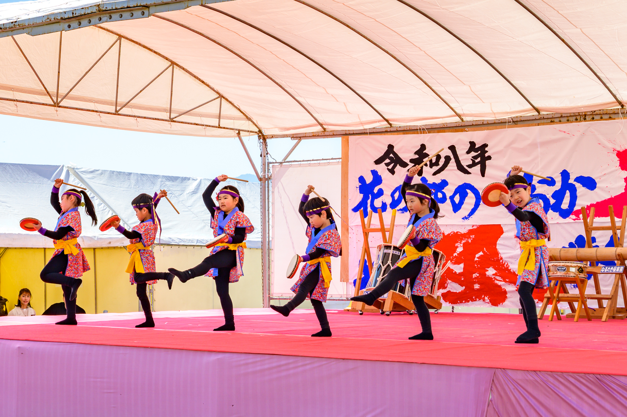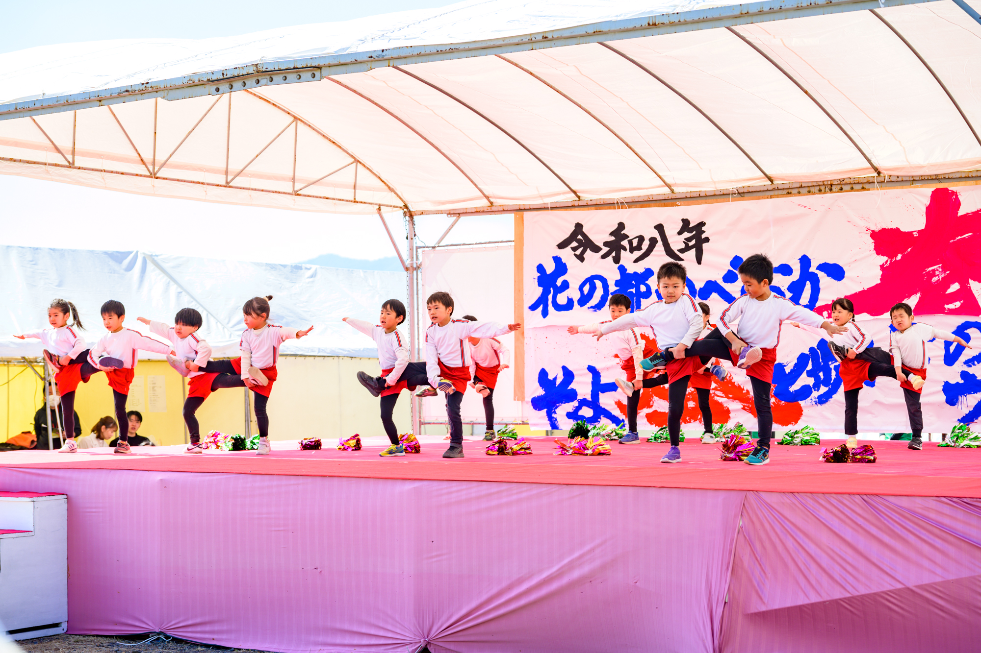 会場の左岸(下流に向かって左側)のエリアはステージイベントと延岡自慢のグルメがずらりと並ぶ「のべおかうまいもの市」、右岸エリアでは、イオン延岡店、多々良店、ホームワイド出北店のご協力による巨大花文字アートや、延岡市内の中学生が手作りしたかざぐるま1,000本の展示、延岡茶道連盟による野点、人力車体験、ワークショップ、自衛隊と国交省による体験コーナー、キッズイベント等など、様々な企画が行われました。