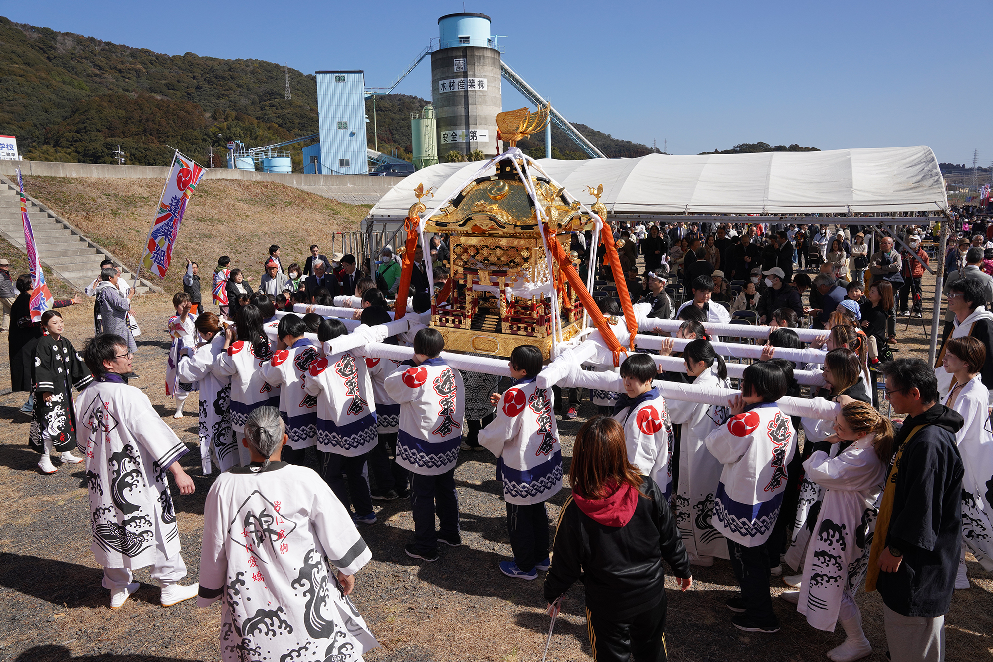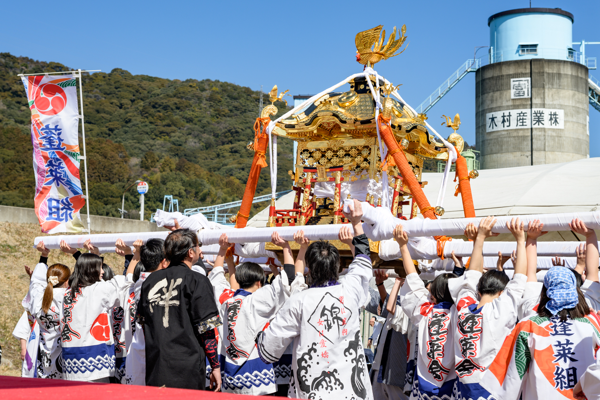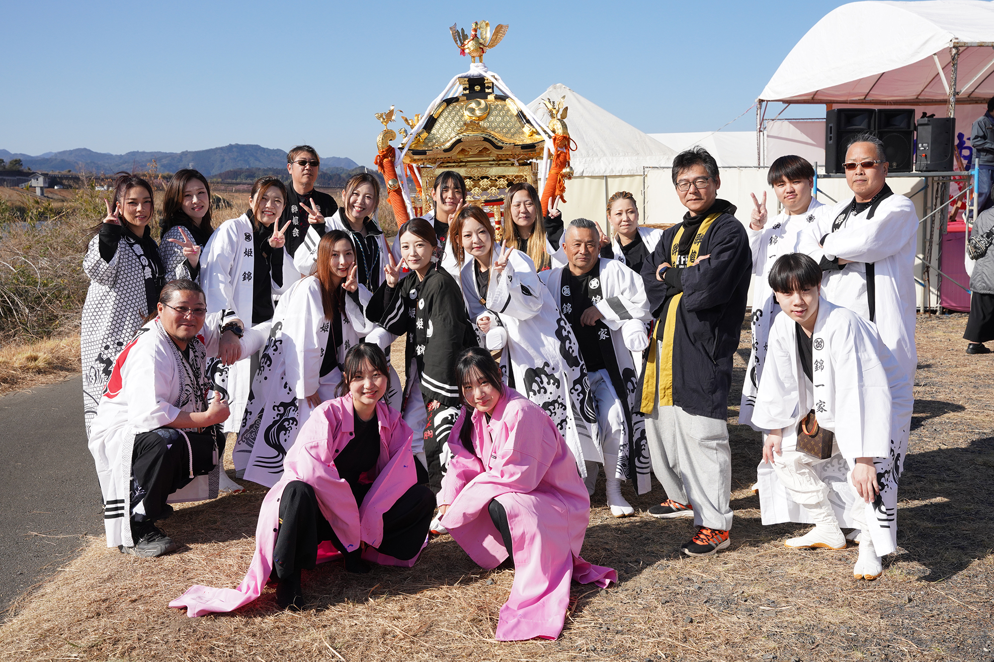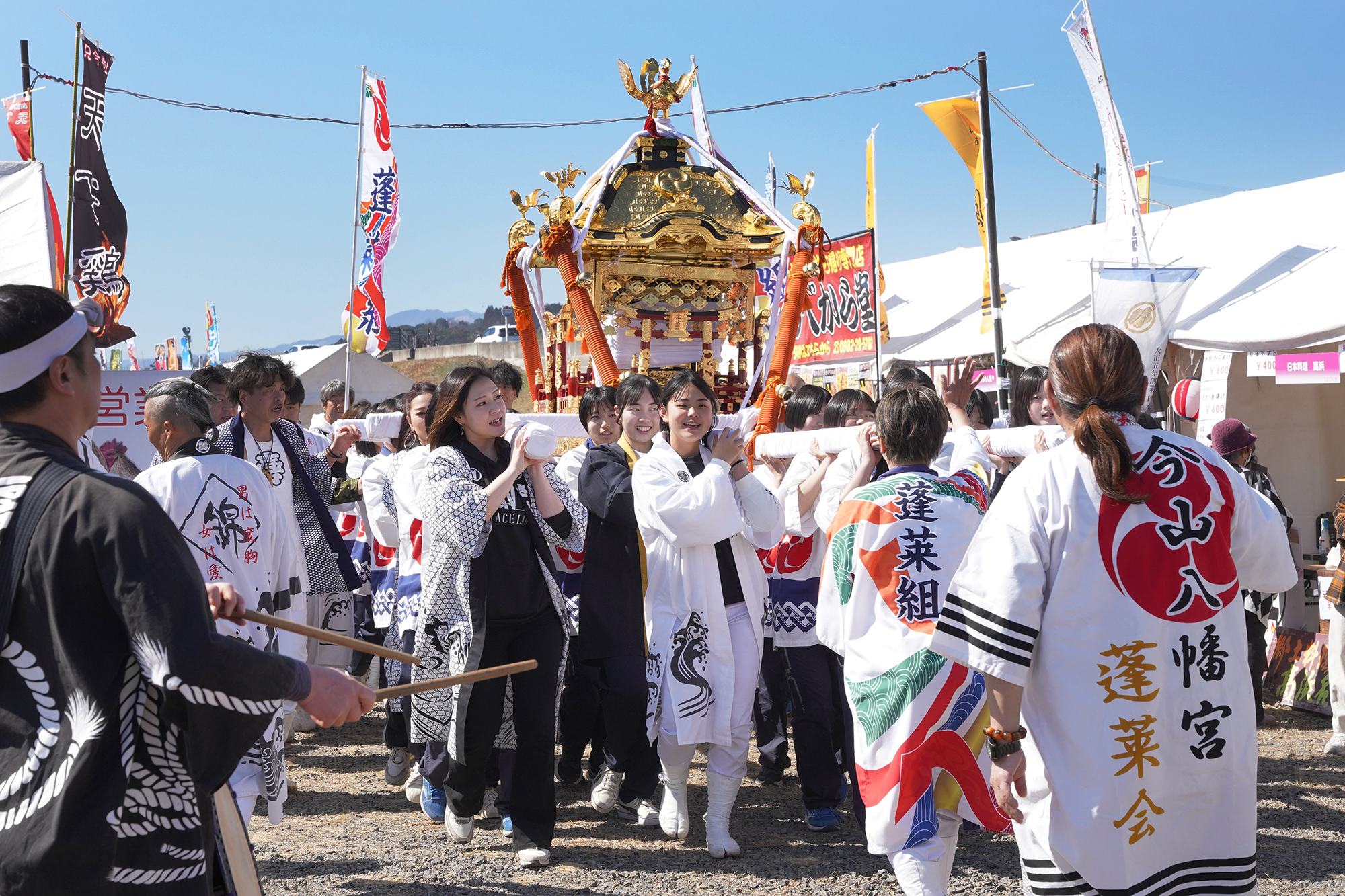 延岡学園女子バレーボール部、延岡青雲高校の女性生徒の方々を中心に神輿を担ぎ上げ、会場を練り歩きました。