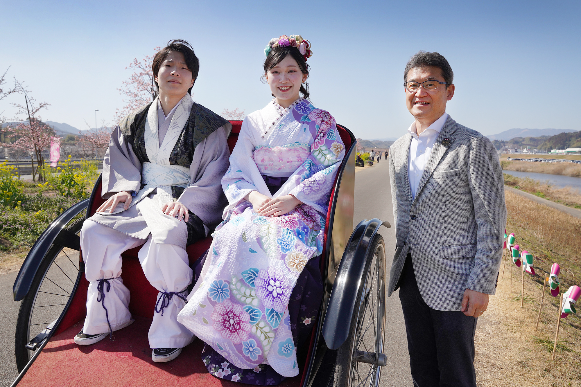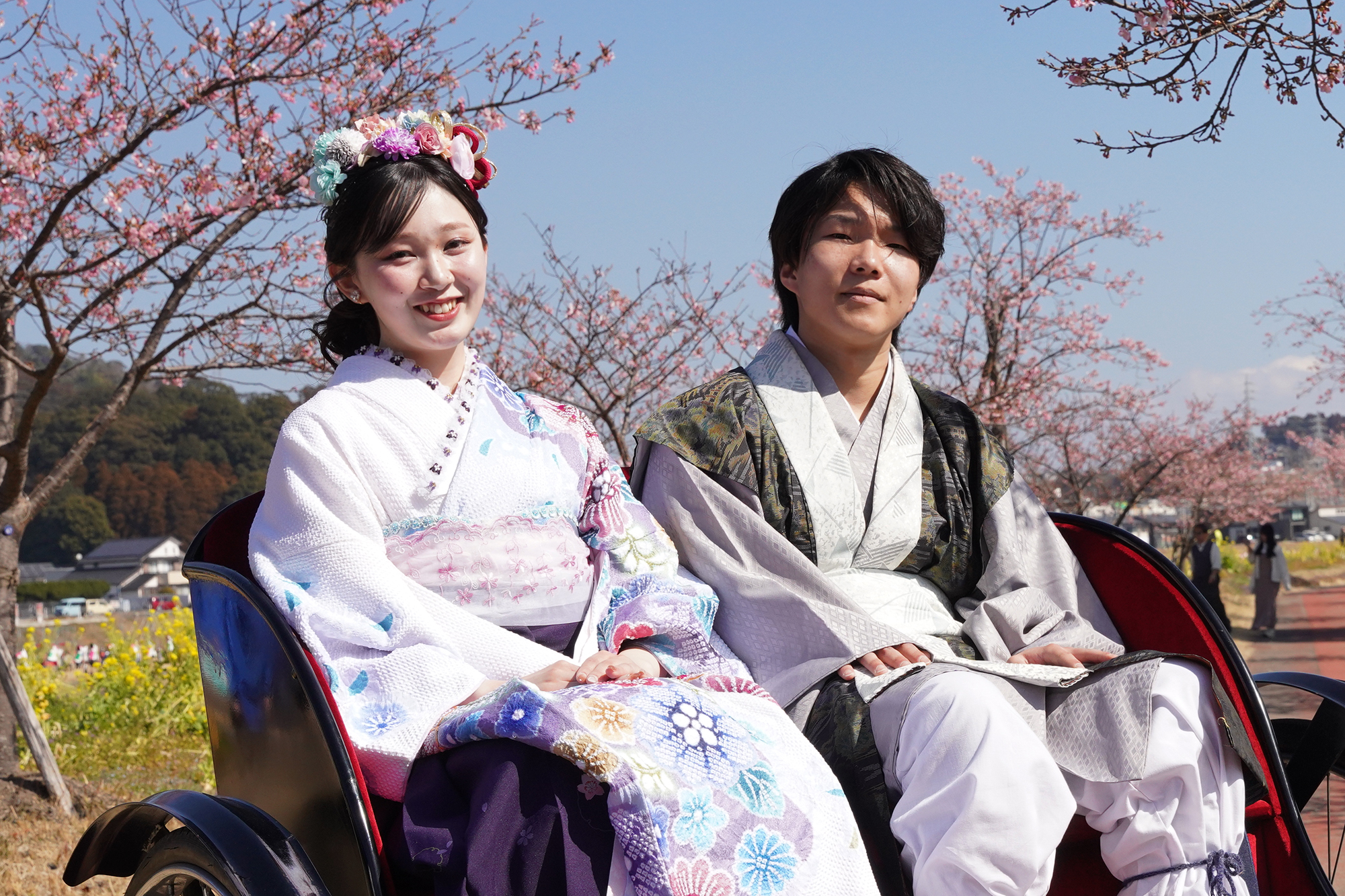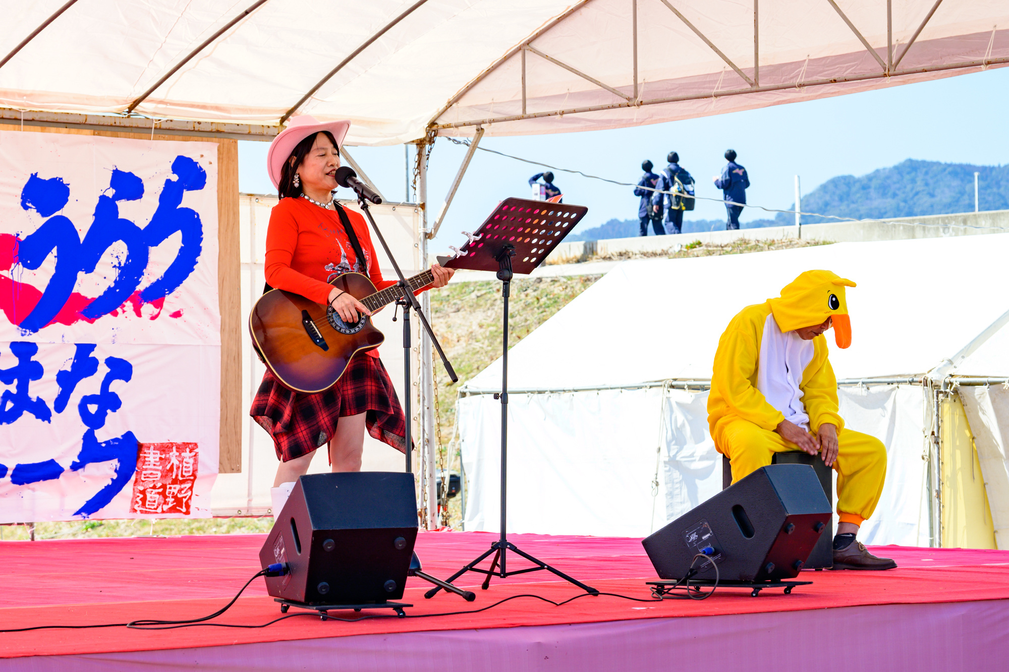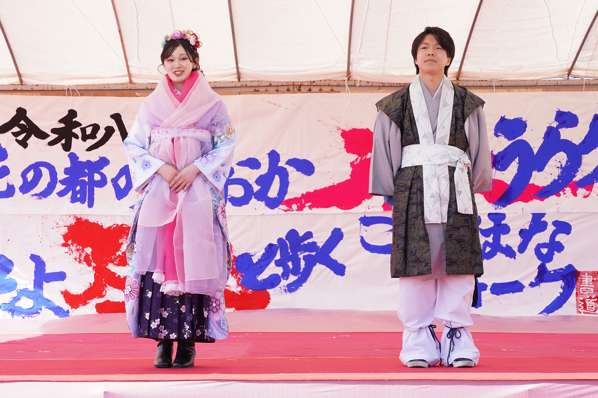 今年は1月後半から2月上旬までに覆われた大寒波の影響が心配されていましたが、開催前1週間は比較的温暖な日に恵まれ、開催当日には桜も9割ほどまで開花が進み、菜の花と鮮やかなピンク色の天下一ひむか桜(河津桜)のコラボレーションが訪れた人の目を楽しませていました。