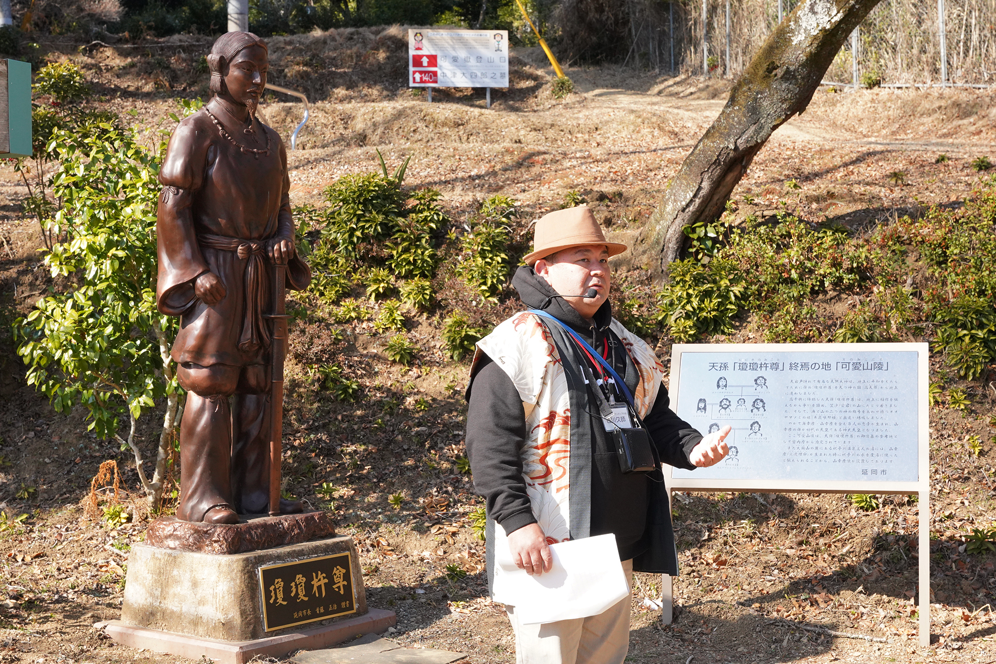 西郷どんとニニギノミコトが出会ったゆかりの地を巡るバスツアー。北川町ある「西郷隆盛宿神跡資料館」では、西郷どんのひ孫である西郷隆夫さんがお出迎え!臨場感あふれる幕末の物語に参加者も真剣に聞き入っていました。