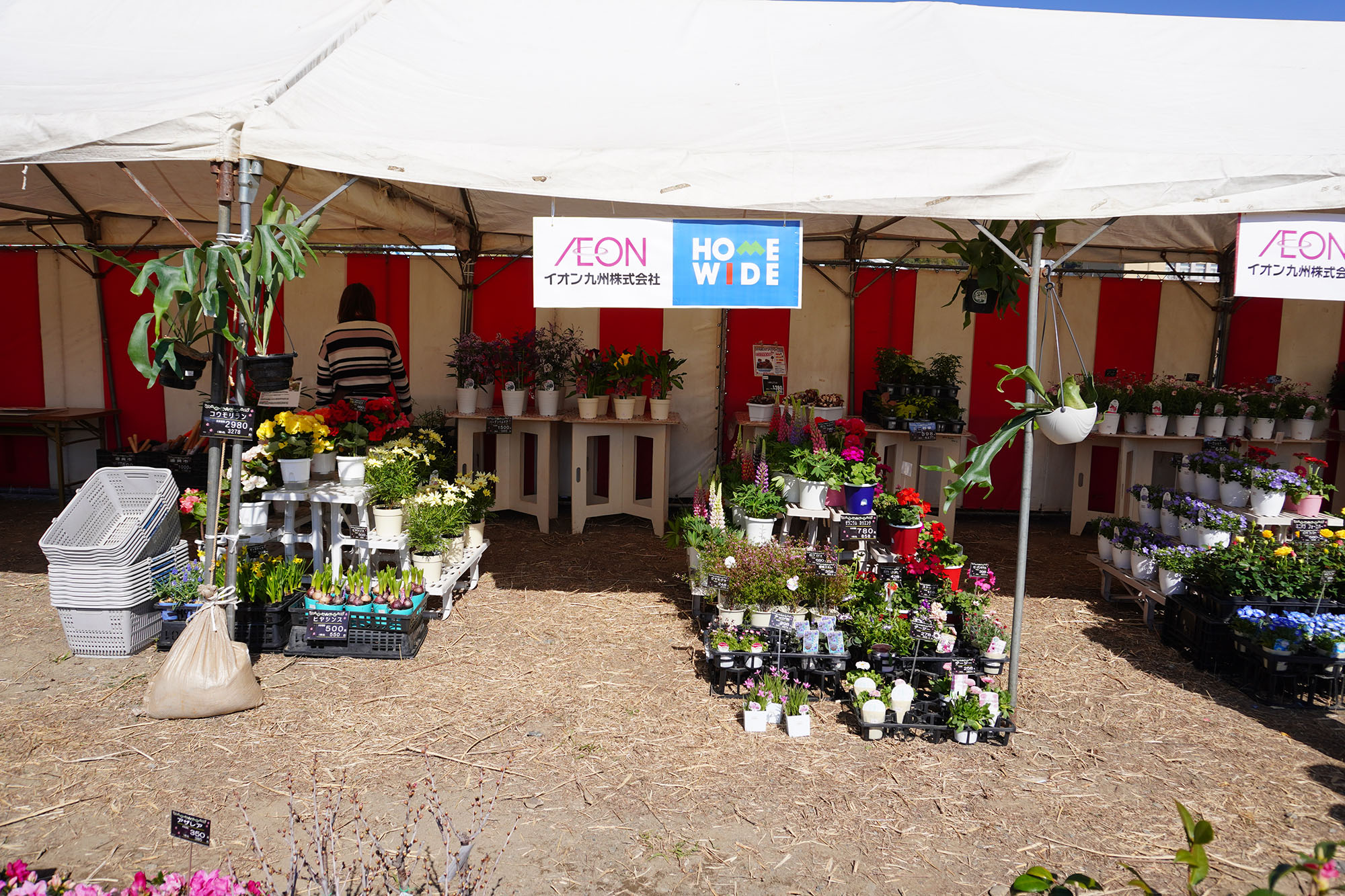 様々な花の販売や展示をはじめ「たねダンゴ」のプレゼントを行うイオンブース、工芸体験などの教室があるワークショップブース、手づくりコットンリースを購入できたりコットンのタネをもらえる「コットンプロジェクト」があるエリアです。