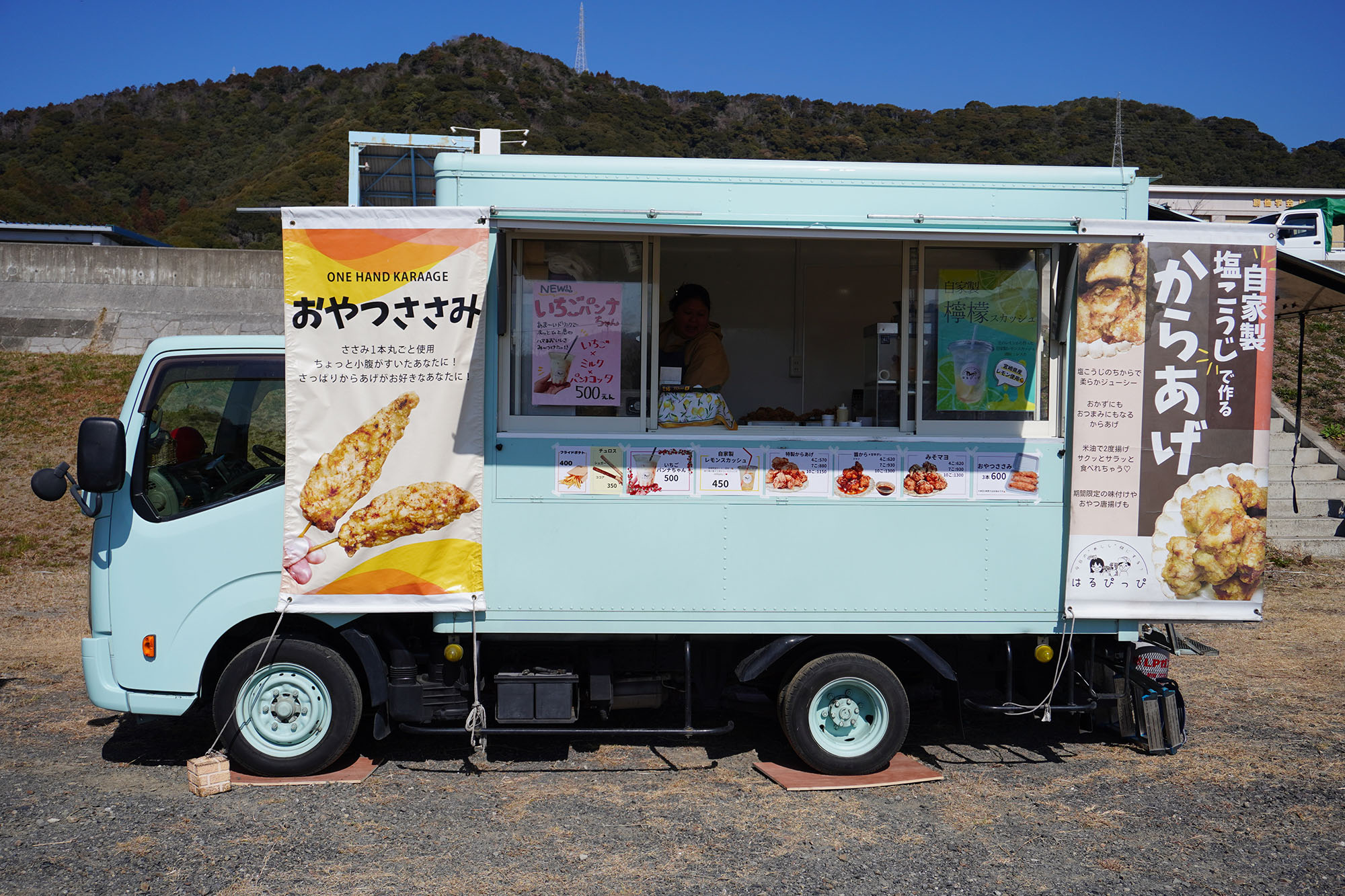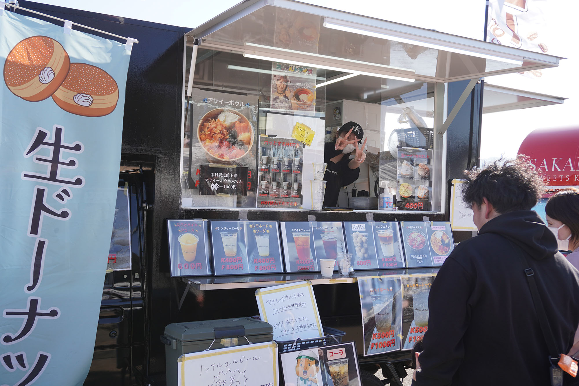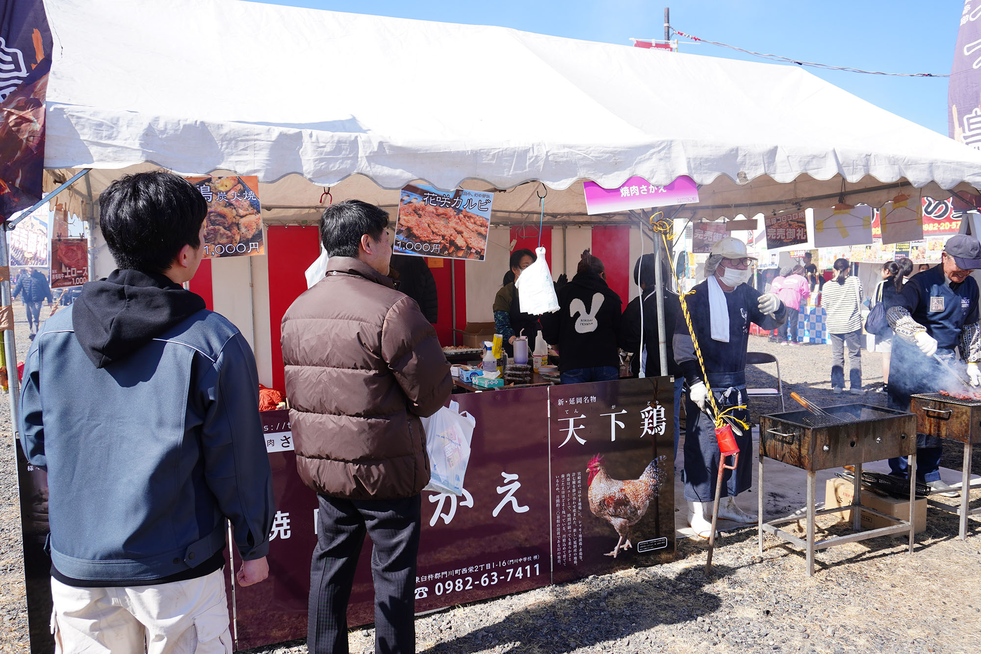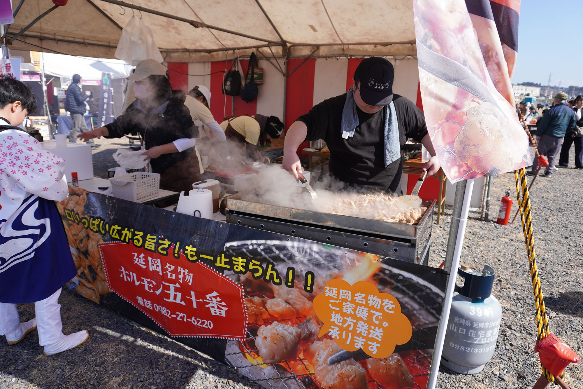 延岡市内外から郷土料理をはじめ様々なグルメや物産品が集結。キッチンかーも9台並び、多くの人が舌鼓をうつ賑やかなグルメブースとなりました。